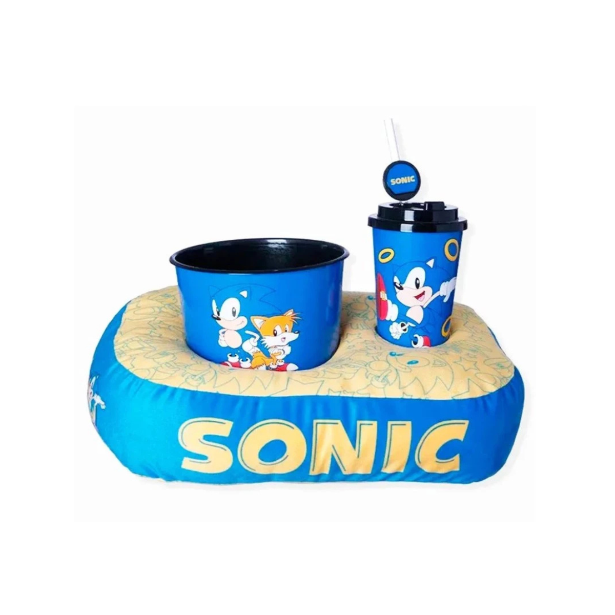 KIT ALMOFADA CINEMA BALDE PIPOCA E COPO COM CANUDO SONIC THE HEDGEHOG – ZONA CRIATIVA