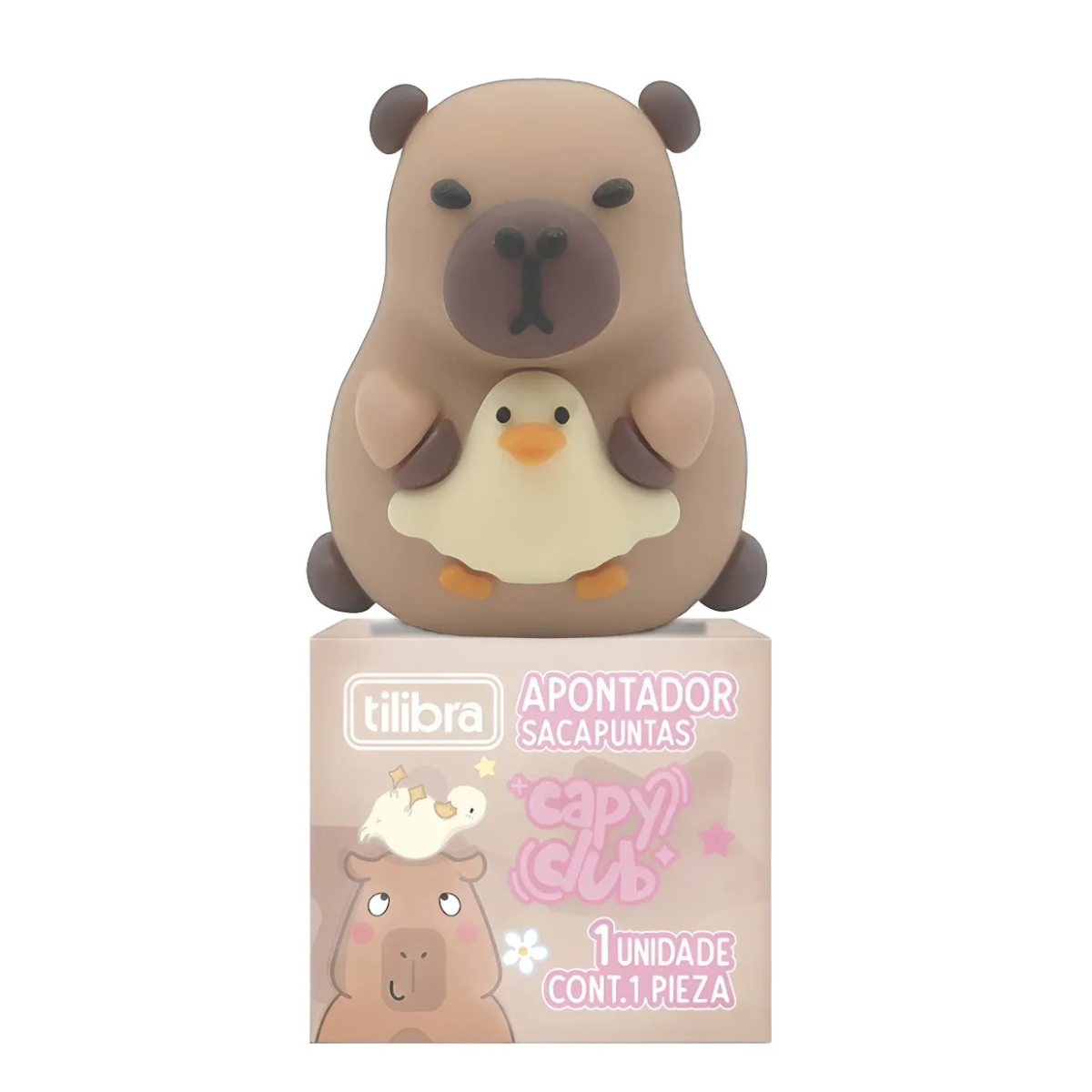 O Apontador de 1 Furo sem Depósito CapyClub da Tilibra é eficiente para apontar lápis com o visual divertido de capivara. Este modelo, com um furo e sem depósito, é equipado com uma lâmina de aço carbono, oferecendo um apontar suave e preciso para prolongar a vida útil dos seus lápis. Detalhes Alta qualidade Cores sortidas Lâmina em aço carbono Material: Poliestireno Modelo de apontador: Sem depósito Quantidade de furos: 1