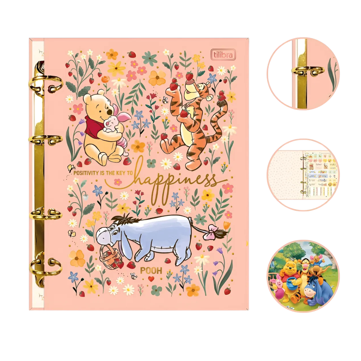 Também temos o refil deste fichário: https://produto.mercadolivre.com.br/MLB-5733874186-refil-fichario-ursinho-pooh-univ-caderno-argolado-80-tilibra-_JM Torne suas anotações muito mais organizadas com o Caderno Argolado Cartonado Colegial Pooh 80 Folhas da Tilibra! Com um formato compacto e leve, este caderno argolado é perfeito para quem busca praticidade ao escrever e estudar diversas matérias em um único produto. O caderno argolado Tilibra possui capa dura com detalhe metalizado e parte interna decorada, oferecendo um visual inspirado no ursinho Pooh, um dos personagens mais famosos e adorados do mundo. O produto também vem com adesivos, bolsa plástica para guardar trabalhos e anotações, jogo com seis divisórias e refil de 80 folhas pautadas e decoradas. Adquira agora o seu! Detalhes Bolsa plástica Capa: dura Capa acabamento: com material metalizado Divisórias: decoradas Ferragem Folhas: pautadas decoradas Material: Capa Dura Com Acabamento Metalizado Parte interna da capa decorada Produto certificado: FSC Formato: 177mm x 240mm Gramatura: 63 g/m² Número de folhas: 80 folhas