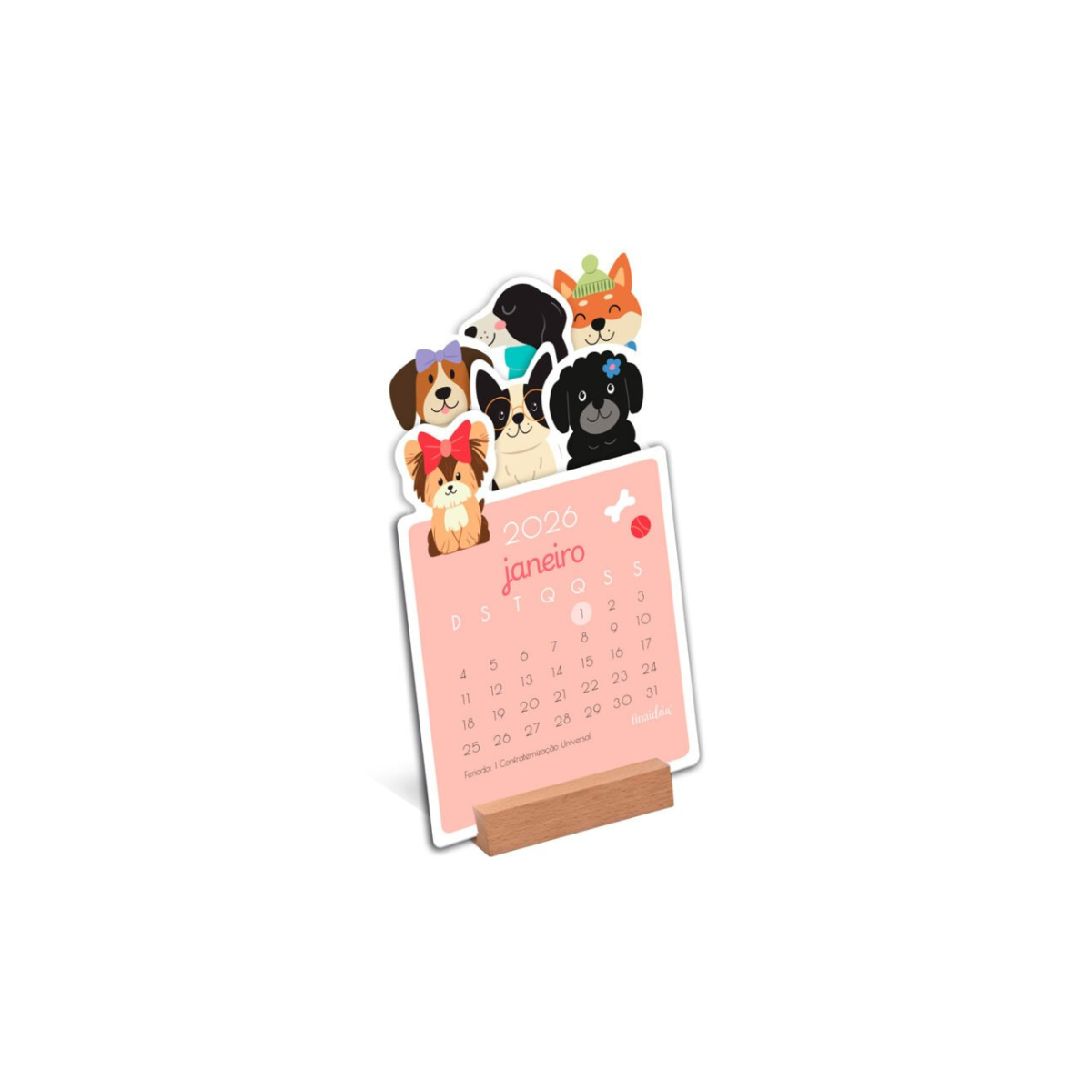 Um cachorrinho diferente a cada mês em um calendário fofo e encantador. Vem em caixa kraft, pronto para presentear!