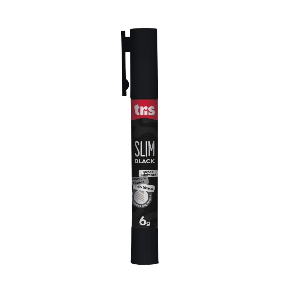 A Cola bastão Slim Black é uma cola preta que também esconde dados impressos, perfeita para quem quer segurança na medida certa. Super aderente e resistente ao calor, além de ter um formato slim que cabe fácil no estojo