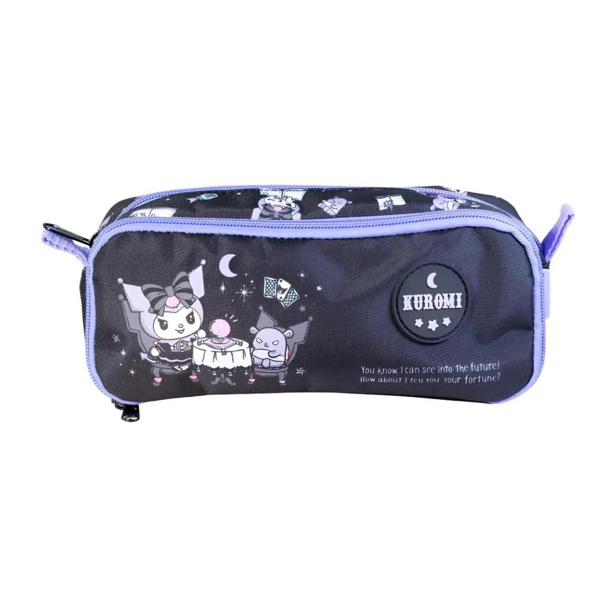 Estojo Duplo Juvenil Escolar Kuromi College - Xeryus Estojo Duplo Kuromi – Inspirado na personagem Kuromi, da Sanrio, com visual divertido e cheio de atitude. Combinação de preto, roxo e lilás. A frente é estampada, com logo emborrachado e com uma arte encantadora. Os puxadores emborrachados personalizados garantem conforto e facilidade no uso diário, para maior durabilidade da peça. Combinando funcionalidade e personalidade, ele se destaca como uma ótima opção de presente para crianças que adoram personagens divertidos e modernos. -Frente em poliéster estampado; -Dois compartimentos; -Zíper tratorado de plástico; -Puxadores metálico personalizados; -Material: Poliester DIMENSÕES: - Largura: 21,5cm - Altura: 8cm - Comprimento: 8cm