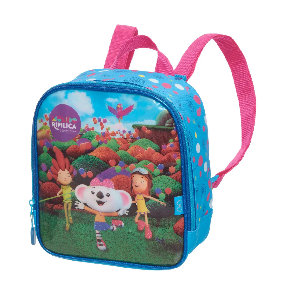 Lancheira Lilica Mundo Ripilica Ceu Azul Pacific 971Z11 Coleção confeccionada em poliéster 600d estampado Possui forro com acabamento térmico Zíper personalizado. Alça de costas e de mão Medidas: Altura: 23,5 cm Largura: 21 cm Profundidade: 9,5 cm