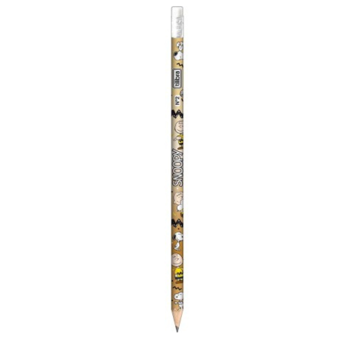 Certificado pelo Inmetro, o lápis preto escolar da Tilibra vem com 190 mm de comprimento, borracha na ponta e corpo redondo, com efeito metalizado e estampa do Snoopy.